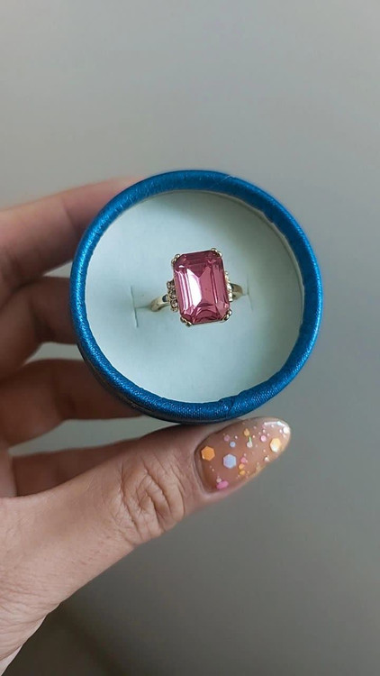 🧩 انگشتر با طراحی زیبا و نگین صورتی
