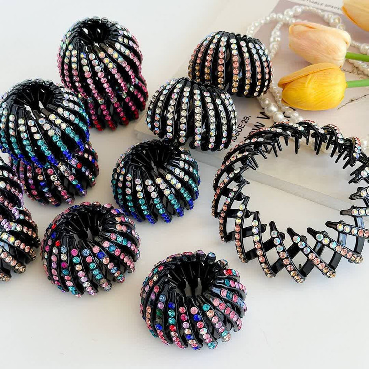 کلیپس چنگکی مخملی و نگین دار🤩✨ 💟خیلی خیلی کار پرطرفداریه😍 💟با هر حجم مویی میتونی ازش استفاده کنی و استفاده ازش خیلی راحته😊🤗 برای دم اسبی، نیمه باز و گوجه ای بستن مو عالیه🥰